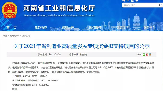 2020年12月28日30日,河南省工業(yè)和信息化廳、省財政廳聯(lián)合組織對2021年省制造業(yè)高質(zhì)量發(fā)展專項資金疑似重復(fù)支持項目組織召開了答疑會,536個項目為2021年省制造業(yè)高質(zhì)量