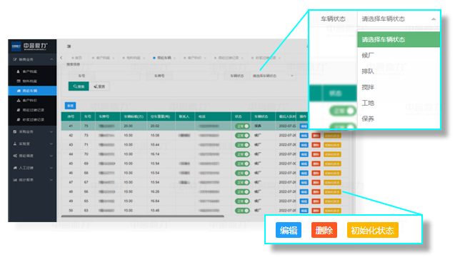 商砼站車輛信息集中管理,車輛狀態(tài)展示,便于商砼車輛調(diào)度。