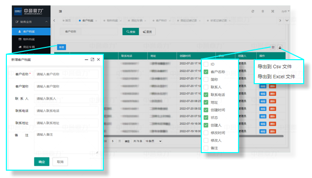 可導(dǎo)出Csv、Excel文件(支持自定義字段)