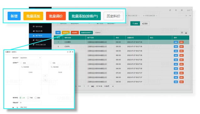 支持按照客戶物料料價(jià)批量修改