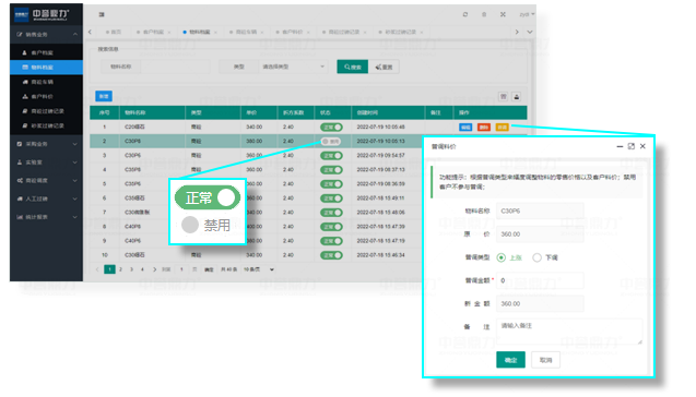 料類狀態(tài)控制,禁用客戶不參與普調(diào);