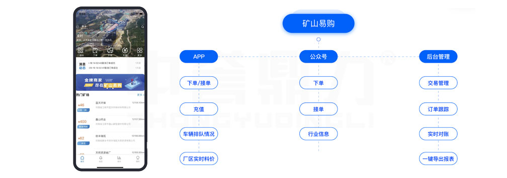 礦山易購(gòu)服務(wù)平臺(tái)由中譽(yù)鼎力軟件科技打造,是一個(gè)砂石骨料行業(yè)的信息資訊及訂購(gòu)交易平臺(tái),方便用戶(hù)快速下單和接單,方便礦山企業(yè)打開(kāi)網(wǎng)上銷(xiāo)售的途徑。平臺(tái)實(shí)時(shí)更新新行業(yè)信息,為砂石骨料行業(yè)提供完整生態(tài)鏈服務(wù)。