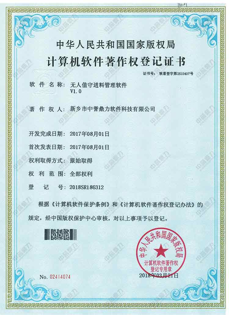 軟件名稱:無(wú)人值守進(jìn)料管理軟件V1.0